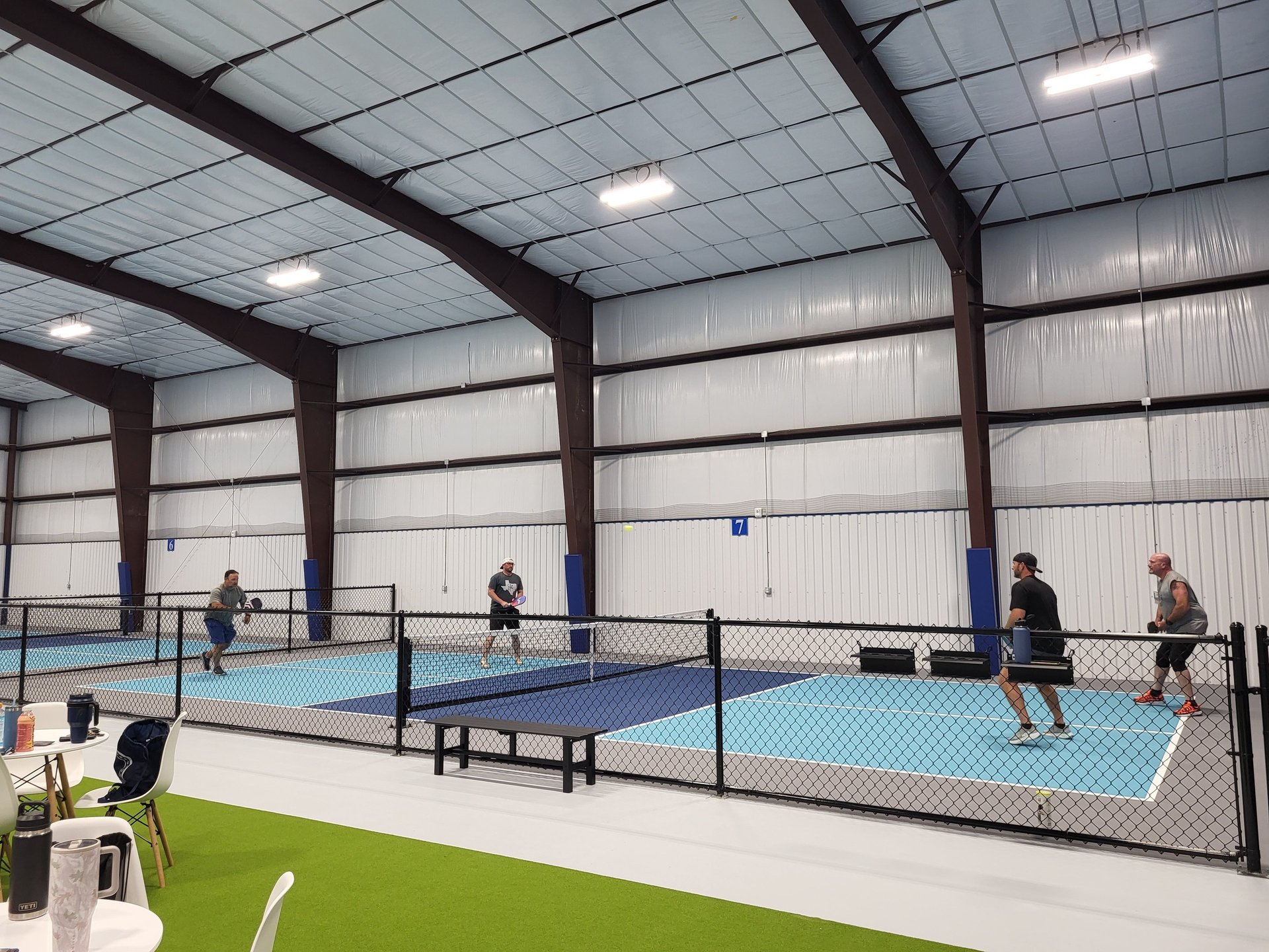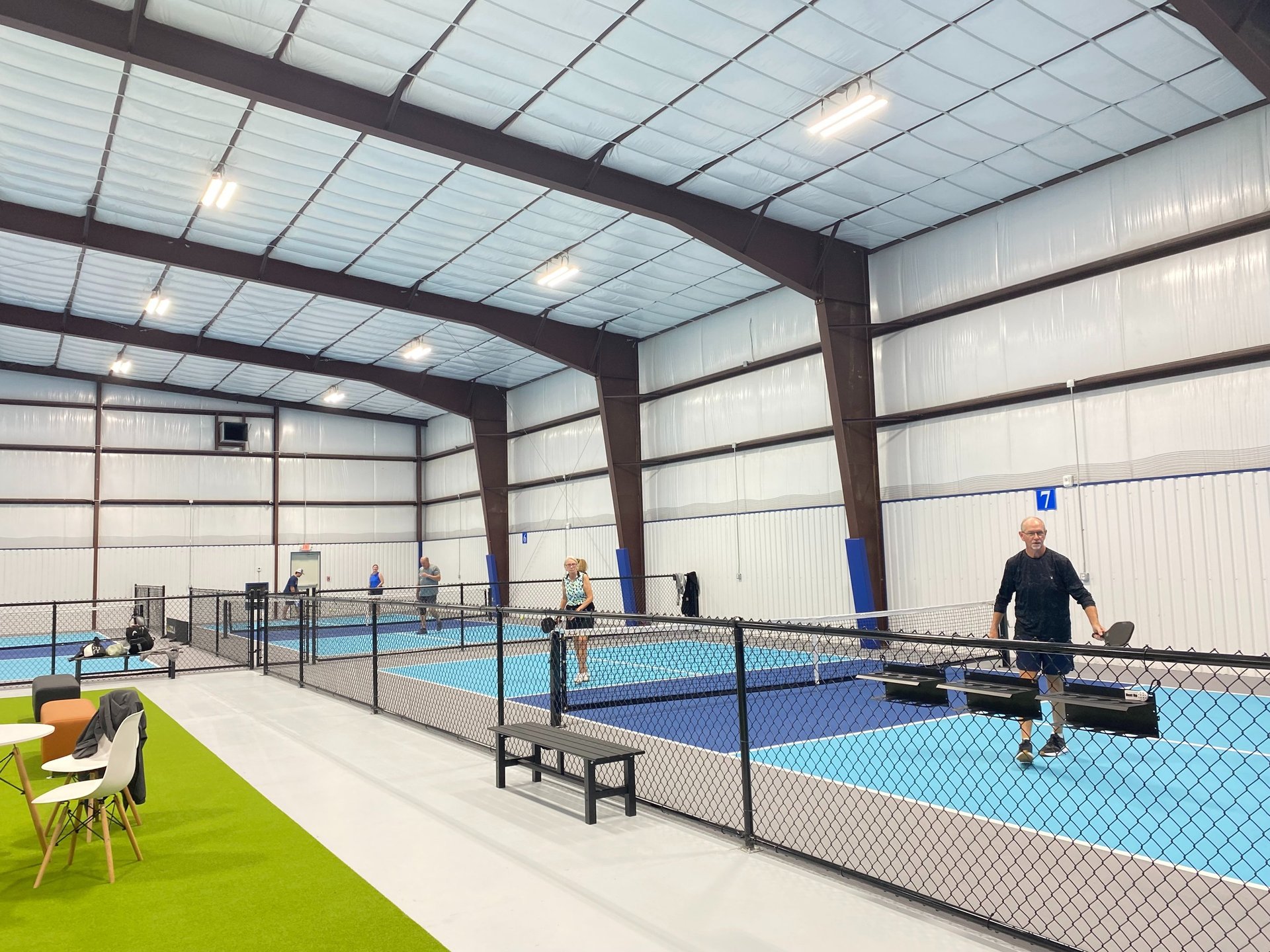 Professional Courts: 7 dedicated pickleball courts and convertible options.