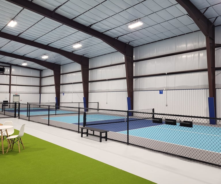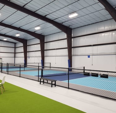 Experience "The Duel indoor pickleball courts and more" on our seven professional-grade, fenced indoor courts designed for optimal bounce and year-round comfort.