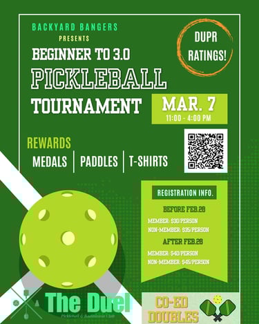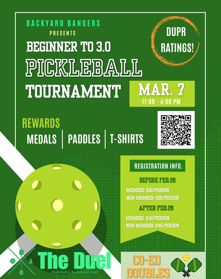 Join us for a co-ed doubles pickleball tournament powered by DUPR, designed to create fair, competitive matchups and a great experience for every player.