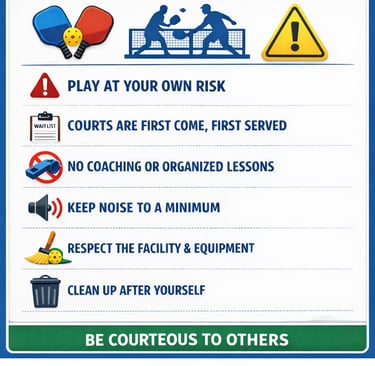 Clean up after yourself and leave the courts in better condition than you found it. Trash bins are provided on the premises, do not litter.