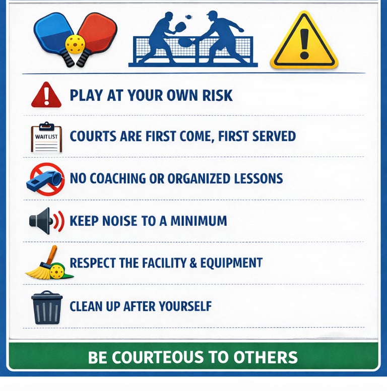 Players are responsible for monitoring their court time and vacating the court at the reservation’s conclusion (1 or 2-hour duration), regardless of match progress.