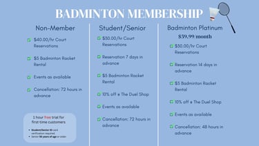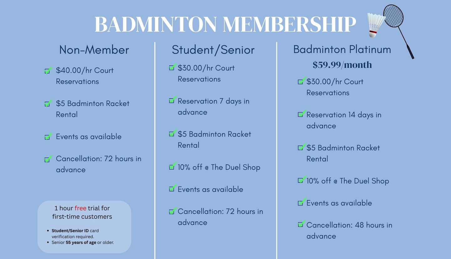 Join our vibrant community for year-round access to top-quality pickleball and badminton courts.